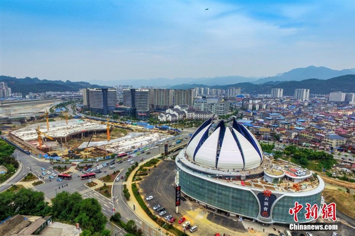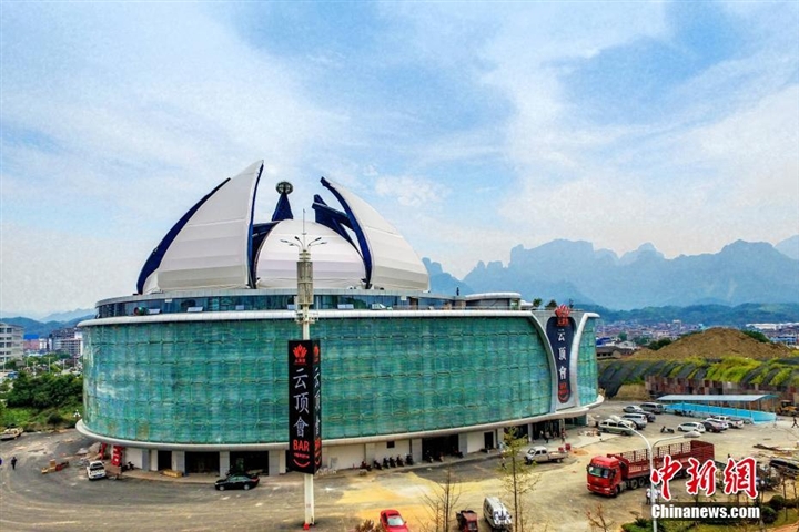9月5日,湖南张家界 云顶 会莲花开合 穹顶 初步手动 调试 取得成功,10片钢瓦重达500吨,从开启到闭合用时9分45秒。据悉,全球最大开合 穹顶 调试 成功后,将于9月10日晚开顶并正式开业。中新社记者 唐云鹏 摄