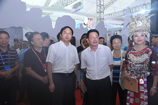 为进一步提升湖南旅游的知名度和影响力,深化旅游业区域交流合作,加快建设以“锦绣潇湘”为品牌的全域旅游基地,2017中国湖南第八届旅游产业博览会于9月19日在湘西自治州开幕。开幕式当天,湖南省人民政府副省长杨光荣来到张家界展馆实地察看。