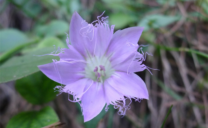 红花龙胆,为龙胆科,多年生草本,茎具棱有分支,叶对生革质,花草生枝顶或腋生,淡紫红色,带有深紫色的条纹,全草药用,清热利胆,消炎止咳,花期10月。