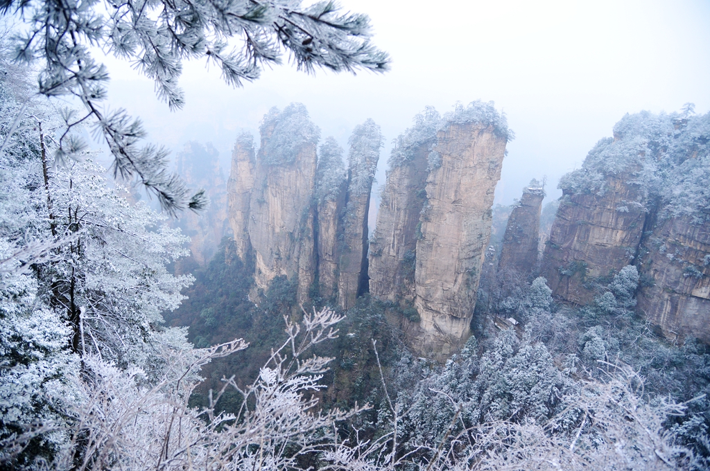 不上黄石寨,枉到张家界。黄石寨,为世界自然遗产张家界武陵源核心景区最大的凌空观景台,拥有摘星台、五指峰、天桥遗墩、猴帅点兵等知名景点,是观赏日出、冬雪、云海、猕猴的绝佳地。气象预报显示,张家界最近连续晴好天气,但因黄石寨海拔较高,因此南国雪景还将存在数日。(邓道理)