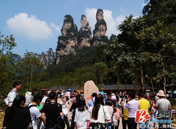 在十里画廊景区,笔者看到游客无论是步行或是乘坐观光电车,脸上都写满了惬意。上海游客徐先生表示,来景区之前做好了挨挤的准备,没想到景区接待空间这么大,根本不用排队。在袁家界景区,乘坐百龙天梯的游人络绎不绝,也未出现长时间排队现象。黄石寨索道、杨家界索道的工作人员称,索道运力充足,往返景区交通工具畅通无阻。