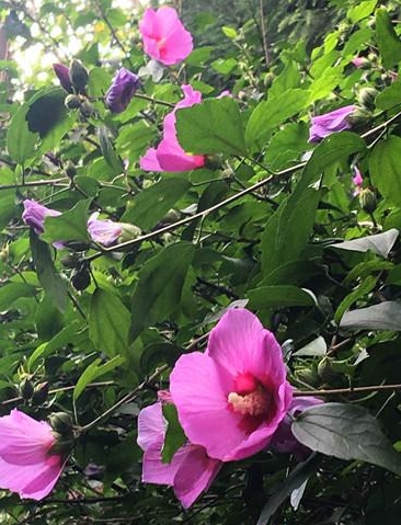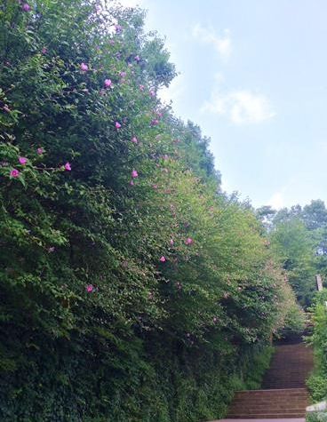 游道旁成片的木槿花
