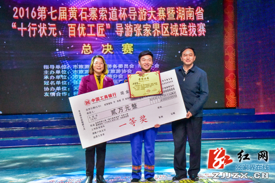 红网张家界分站11月24日讯(记者 王洁)“尊敬的各位朋友们,大家好!欢迎您来到张家界,今天我要带领大家游览黄石寨风光……”11月24日上午,在张家界第七届“黄石寨索道杯”导游大赛暨湖南省“十行状元、百优工匠”导游张家界区域选拔赛总决赛及颁奖典礼现场,从报名参赛的200名导游中脱颖而出的6名导游精彩的模拟景点讲解,仿佛引领大家“零距离”领略了祖国的大好河山。市人大常委会副主任吴名凤,副市长欧阳斌出席并颁奖。