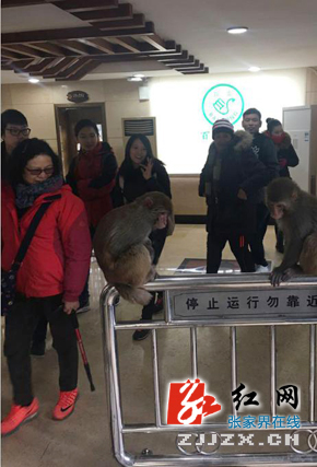张家界已经入冬,部分猴子们开始上山觅食。“猴子会趁人不注意溜入天梯,有四五只猴子是‘顺风梯’常客。大多数猴子还是不敢坐天梯的,主要是怕人。”景区工作人员介绍,每到秋冬季,少数猴子会若无其事地跟着游客混入往返通道,搭乘天梯上山寻找游客留下的食物残渣。张家界百龙天梯为世界上最高的户外观光电梯。