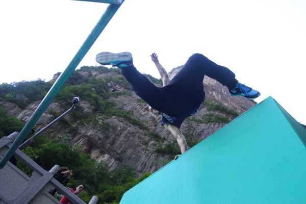 对于普通人来说,从天门山999级“天梯”走下来都心惊胆颤,可对于这群艺高人胆大的跑酷大神们来说,从布满障碍物的“天梯”跑下来才过瘾。