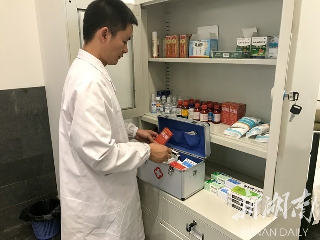 “高温下,偶尔会发生游客中暑的现象。”在大峡谷谷底的医务室,医生王军刚处理完一件游客中暑事件回来,打开医药箱,防暑降温、跌倒损伤等药品整齐排列,在提供临时救助的同时,供游客免费索用。