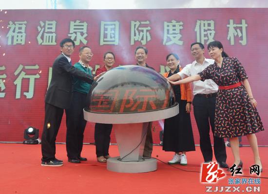 启动仪式上,朱国军、田华玉、吴名凤、邱初开、吴淑元共同触摸启动球,标志着张家界万福温泉国际度假村正式开启试运营。