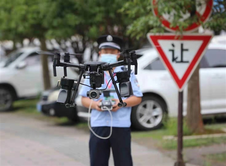 8月12日,湖南张家界市武陵源区疫情防控民警操纵无人机进行人群监测和移动宣传。疫情发生以来,武陵源区利用无人机对居民小区、农贸市场、城区道路等重点区域进行巡查和监测,并通过配备的喊话系统进行移动宣传,提醒居民在疫情期间自觉遵守防控管理措施,随时疏导或制止异常行为。