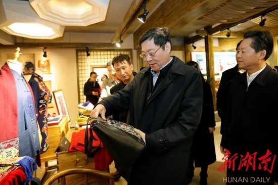 杜家毫在乖幺妹土家织锦开发有限公司考察。以上图片均为湖南日报记者罗新国 摄