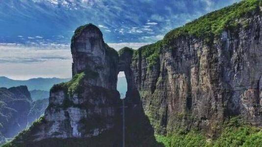 二、天门山,因其罕见的世界自然奇观“天门洞”而得名!这也是这个景点的标志性代表地点之一。天门洞就像是通往天界的一扇大门,人们必须经过999级台阶方能登上洞顶。而洞外的景象更是让人们充满了神奇感和无数幻想。当然,爬不动台阶的游客们也可以在旁边坐电梯登上洞顶。