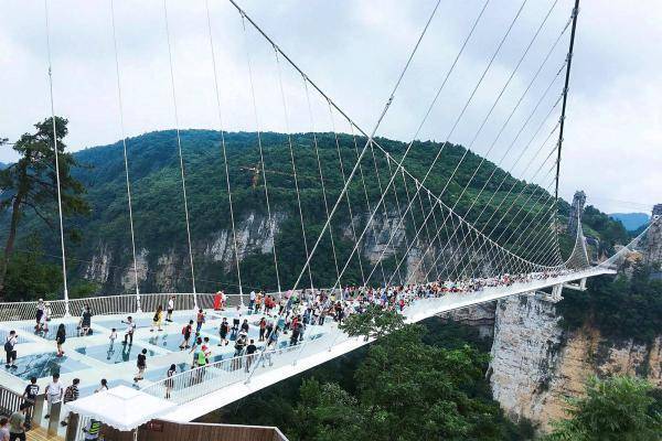 当然,去张家界游玩肯定不能漏掉最受欢迎的玻璃桥了!这座号称世界上最高最长的全透明玻璃桥,几乎每年都驻足了人山人海的游客。很多游客喜欢在此拍照留念。不过,小编还是需要温馨提醒下那些胆子非常大游客们,去玻璃桥游玩一定要注意安全。虽然玻璃桥经过了安全监测,但因为游客人数太多,很容易发生拥挤事件。所以景区也为此专门制定了一些游览规则,通过人群数量的限定和不同的游览时间,来进一步保证游客们的安全!