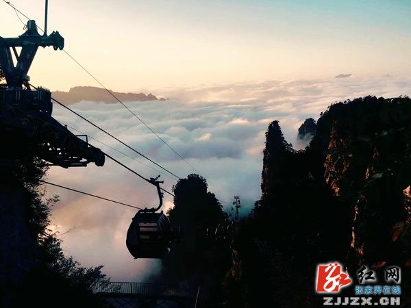 红网张家界站10月4日讯(通讯员 邓道理 周怀松)“好壮观啊,美醉了!”10月4日清晨6时许,张家界市武陵源区天子山索道公司员工钟亚在启动车厢的时候,被眼前出现的云海奇观陶醉。