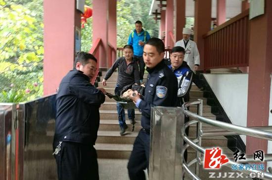 13:25:应急队员与森林公园蓝马医院取得联系,同时与黄石寨索道公司进行衔接,开通绿色通道。