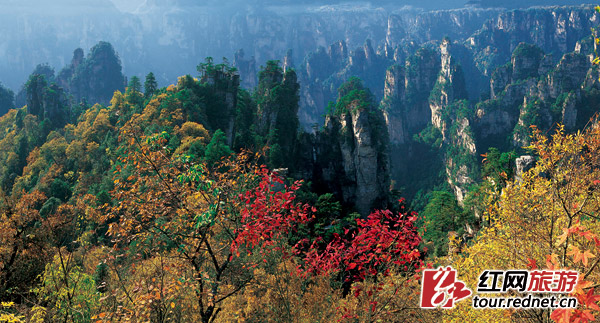 深秋的张家界武陵源核心景区,万山红遍。