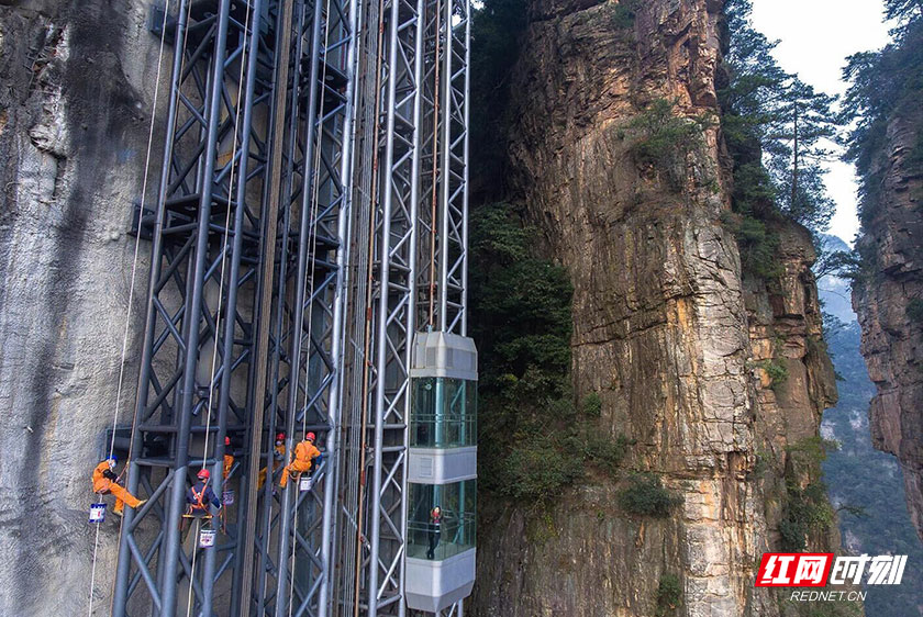 2013年,百龙天梯进行扩容提速,升级改造后的百龙天梯每台单次载客可达64人,运行速度提高到5米/秒,单程仅需1分28秒,三台电梯的总运力每小时升至约6000人,有效地缓解了核心景区游客中转排长队的问题。百龙天梯开通至今,安全运达游客近3500万人次。