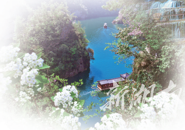 游船漫步于山花烂漫和碧水间。 吴勇兵 摄
