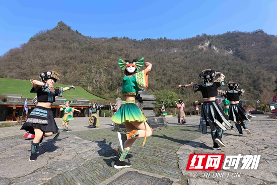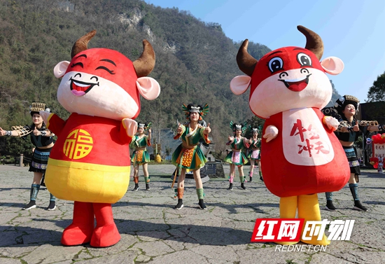市武陵源区黄龙洞景区工作人员为游客表演民俗文化节目,庆新春迎宾客。