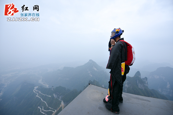 红网张家界站10月9日讯 (记者 向韬)10月9日,农历九月初九,是中国的传统佳节重阳节,又名登高节,来自中国的翼装飞行选手张树鹏,在张家界天门山国家森林公园进行今年世界翼装飞行竞标赛的赛前训练。登上起跳台,张树鹏纵身一跃,千峰万壑、层峦叠嶂尽收眼底,引来游人连声惊叫。