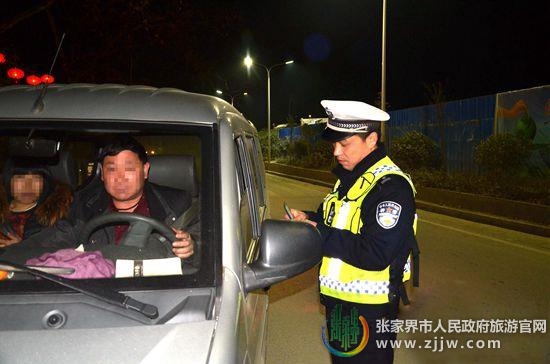 1月30日是全省整治酒驾统一行动日。当晚,张家界市公安局交警支队直属一大队在辖区设立4处卡点,严查酒后驾驶交通违法行为。